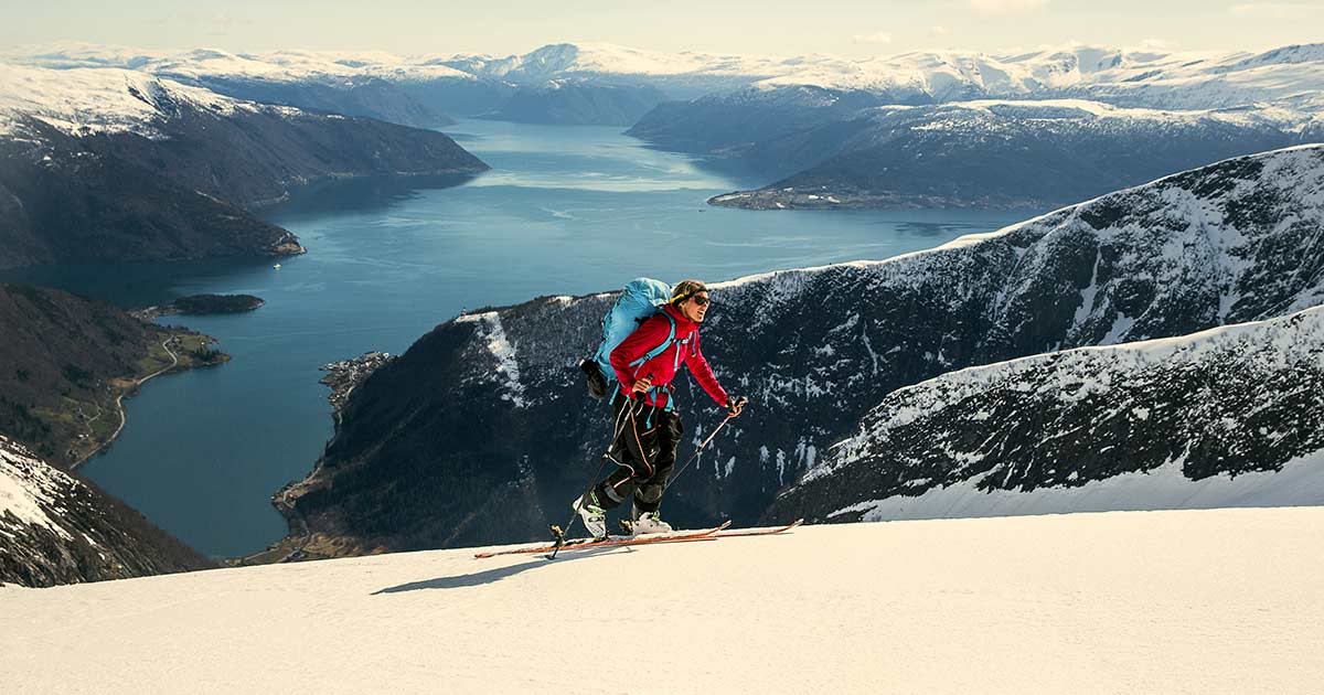I Sognefjorden kan du nyta toppturen med fantastisk fjordutsikt, før du køyrer ned i urørt snø og avsluttar dagen med kakao ved peisen.